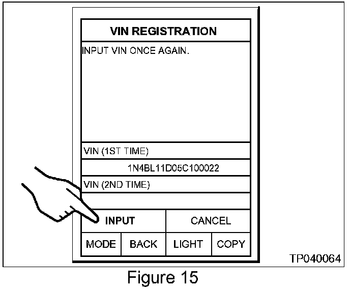 h. Select [INPUT] on the "VIN Registration" screen and enter the entire VIN again. See Figure 15.