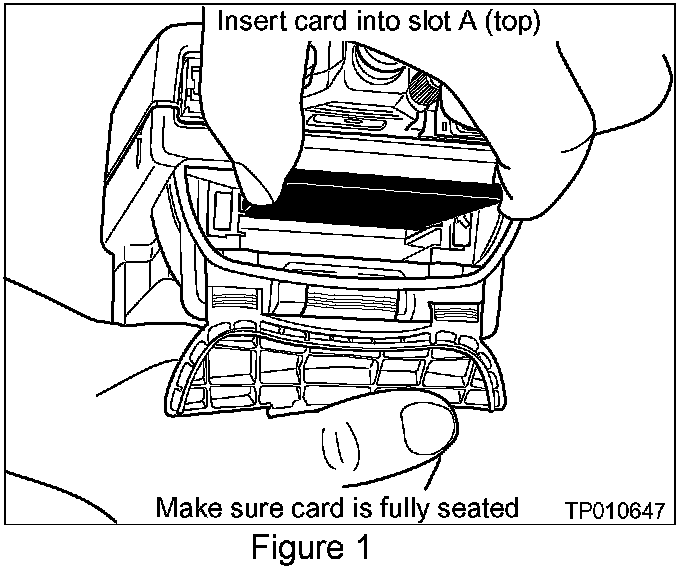 31. Remove the reprogramming CARD from CONSULT-II and insert the Diagnostic Card (red/white card).