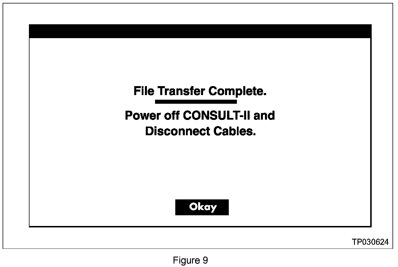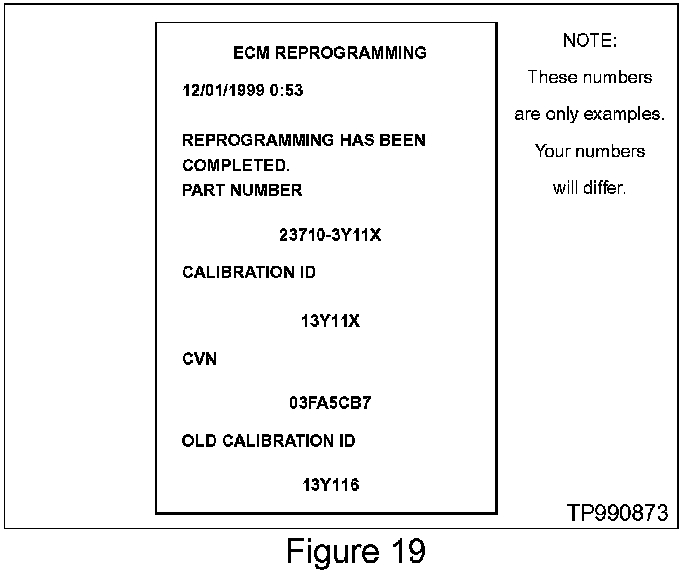 27. When the Reprogramming is complete, CONSULT-II will "beep", turn the screen backlight back ON and automatically print out a report (see Figure 19).
