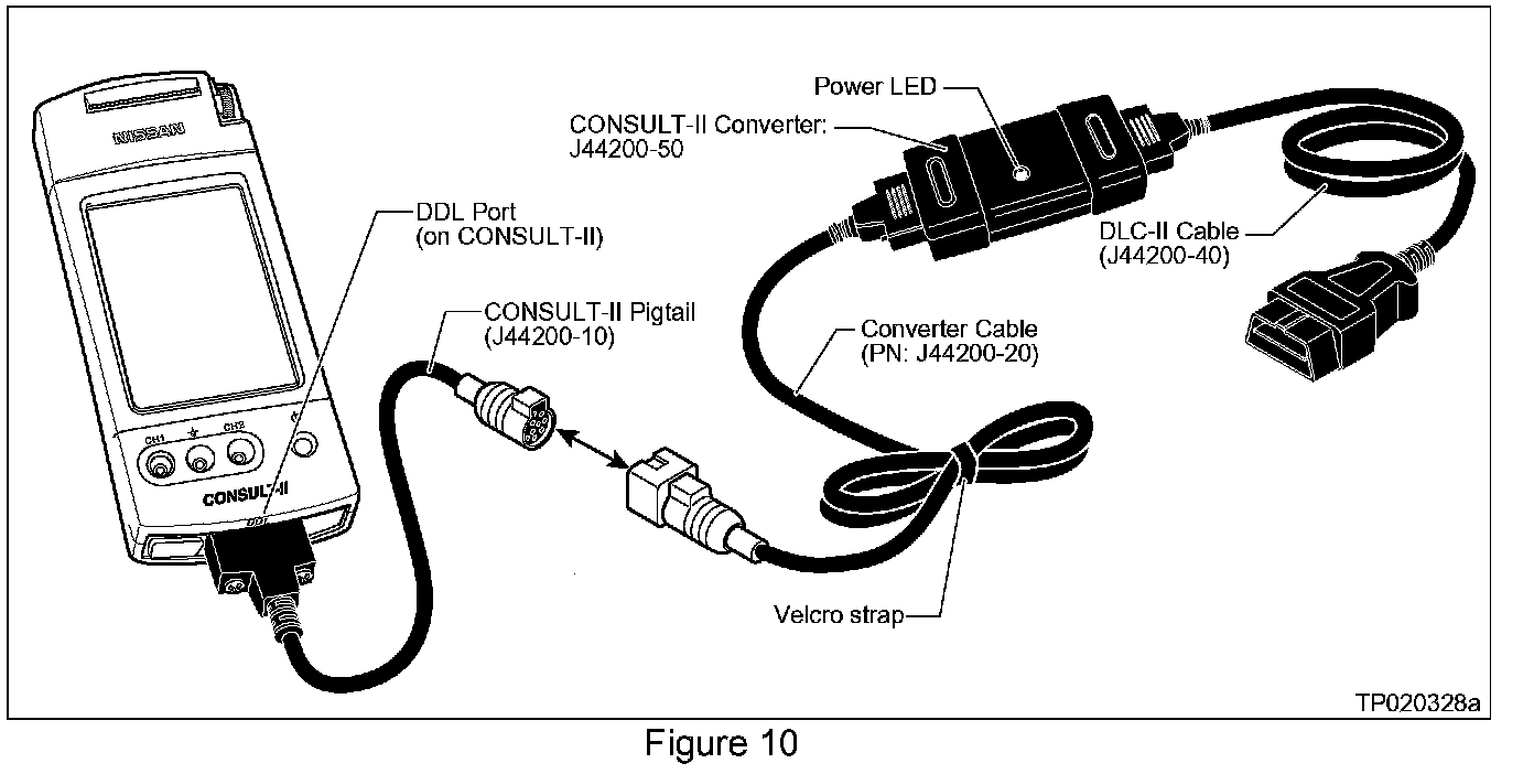 d. The CONSULT-II Converter (J44200-50 / black box) is not working correctly (see Figure 10).