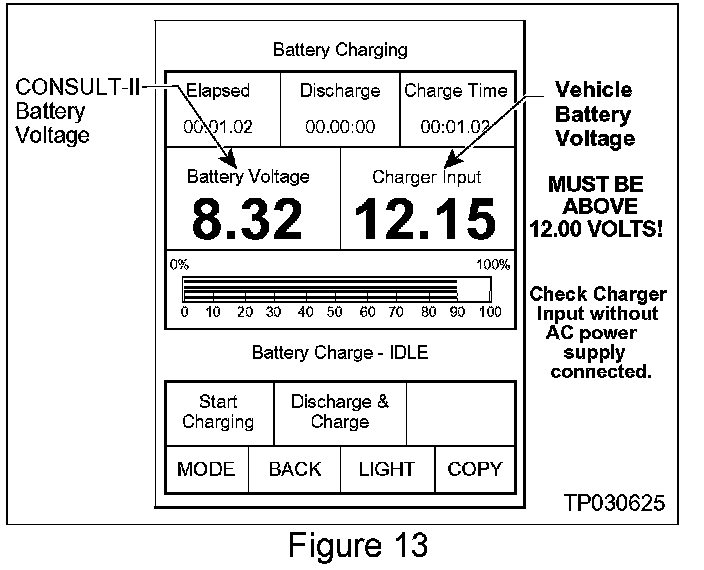 18. Check the CONSULT-II's Charger Input reading (see Figure 13).