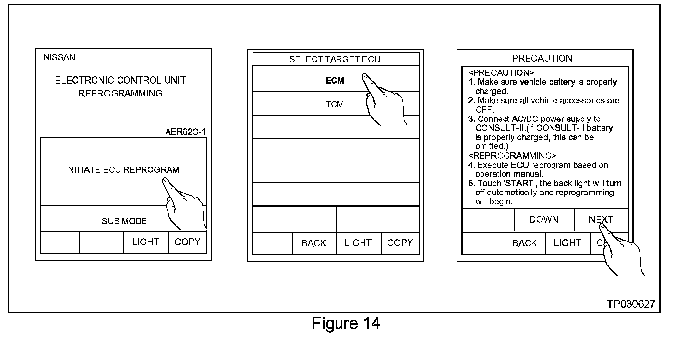 ^ Proper CONSULT-II power supply during reprogramming-very important if the CONSULT-II battery is low.