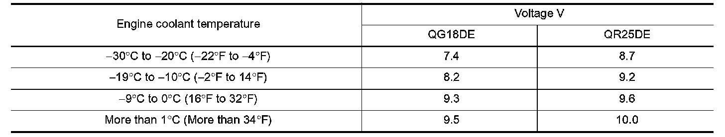 Minimum Specification Of Cranking Voltage Referencing Coolant Temperature: