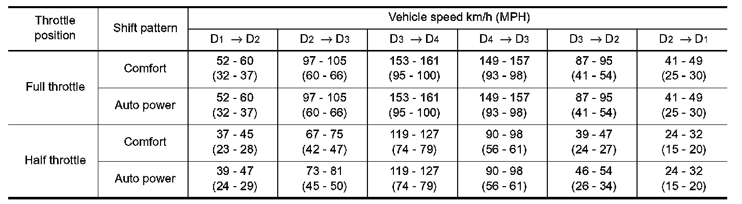 VEHICLE SPEED WHEN SHIFTING GEARS THROTTLE POSITION