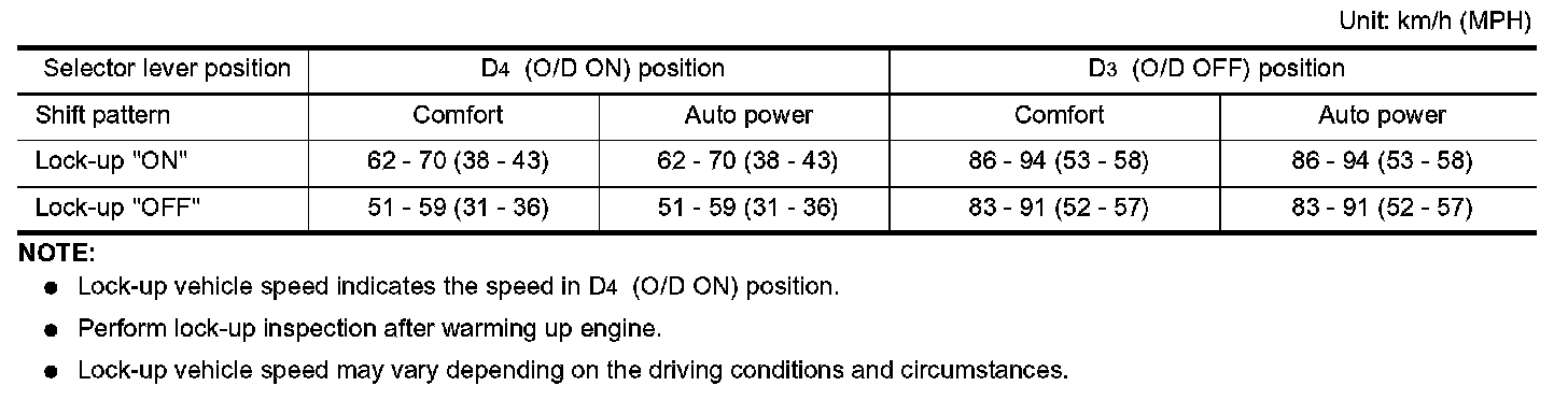 VEHICLE SPEED WHEN PERFORMING AND RELEASING LOCK-UP
