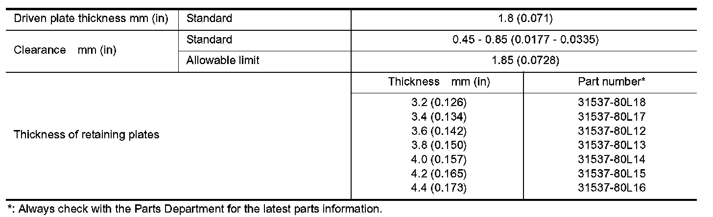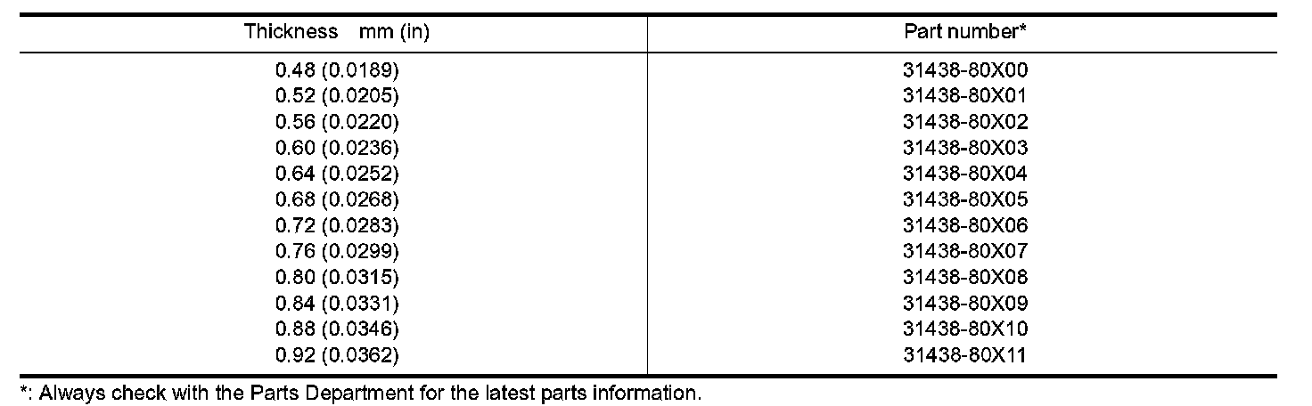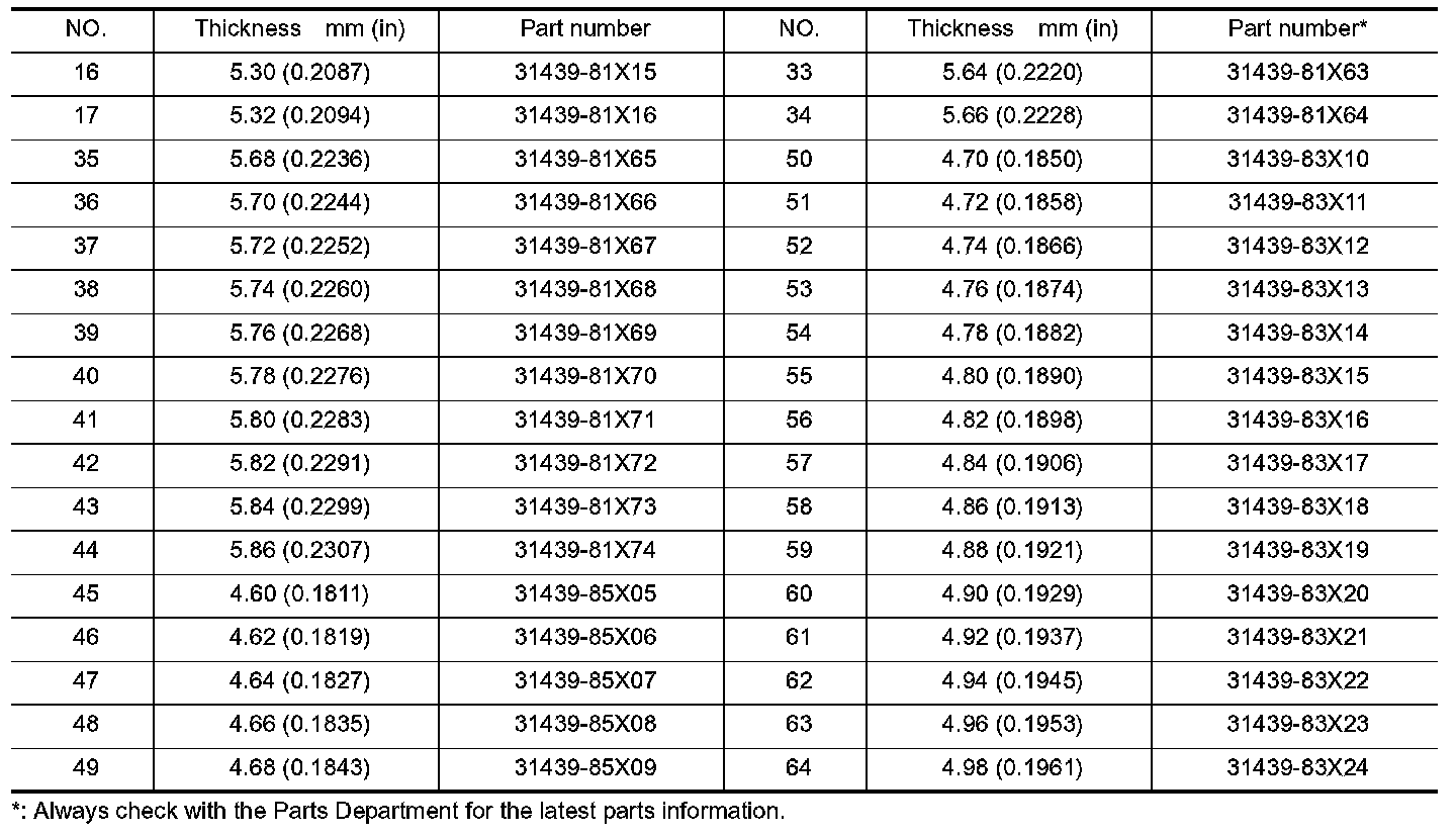 DIFFERENTIAL SIDE GEAR CLEARANCE