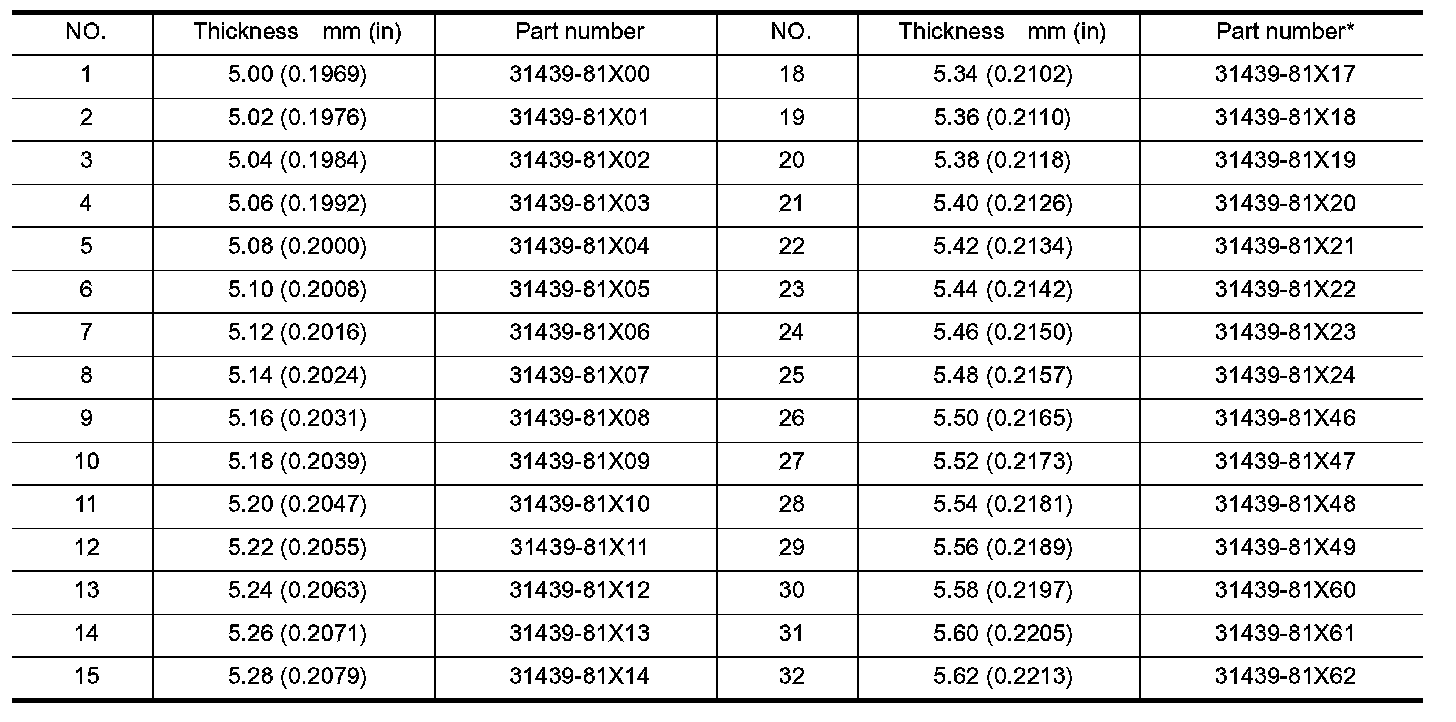 DIFFERENTIAL SIDE BEARING PRELOAD ADJUSTING SHIMS