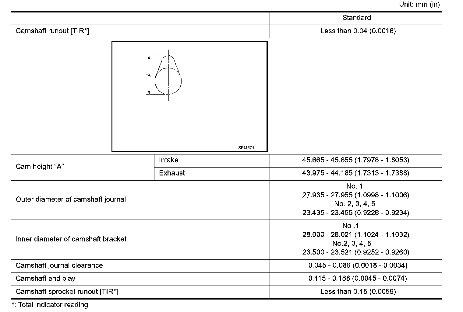CAMSHAFT AND CAMSHAFT BEARING - 2.5L (QR25DE):