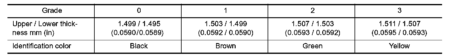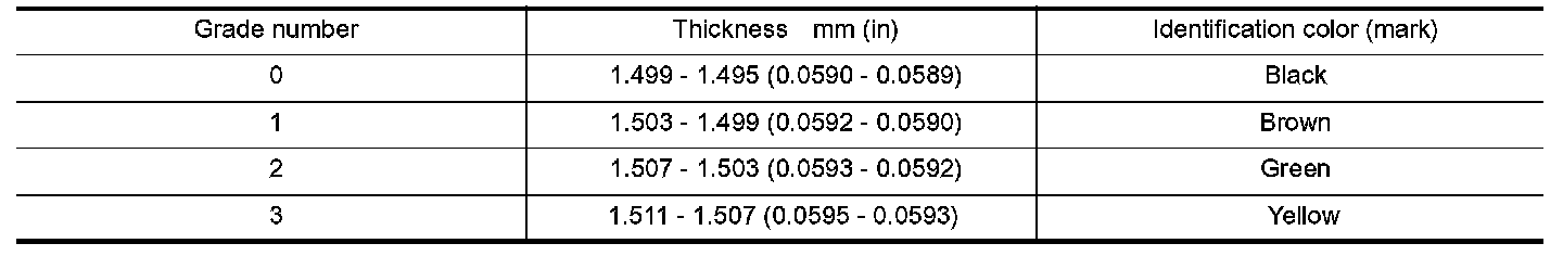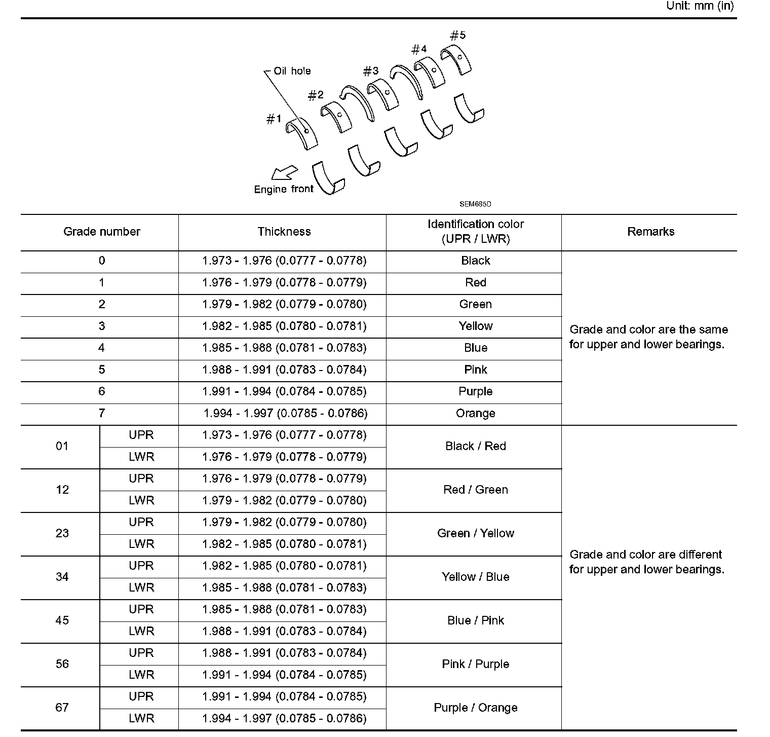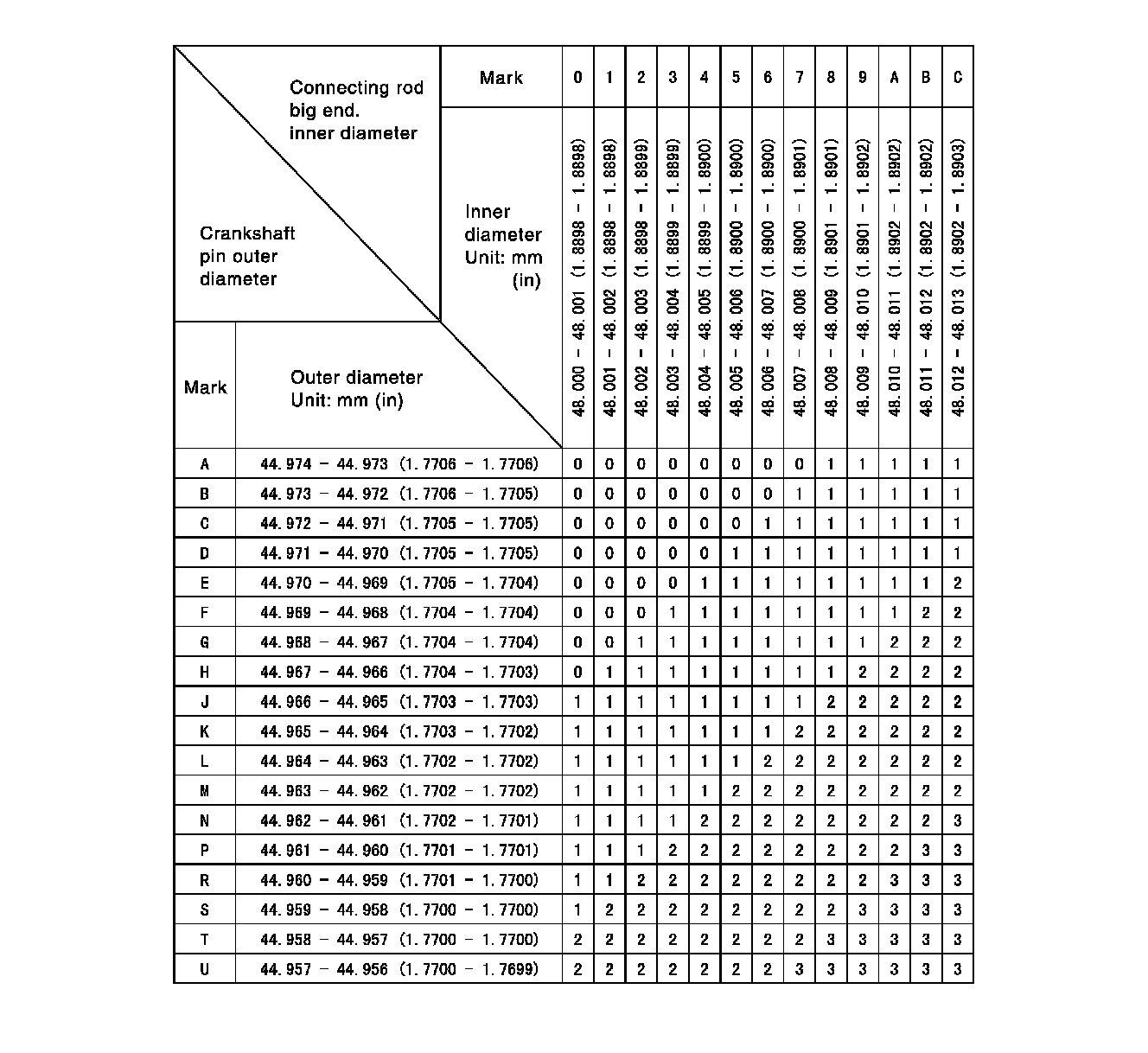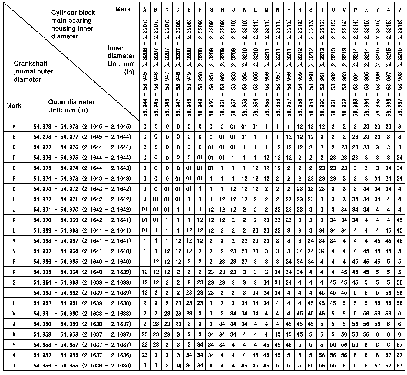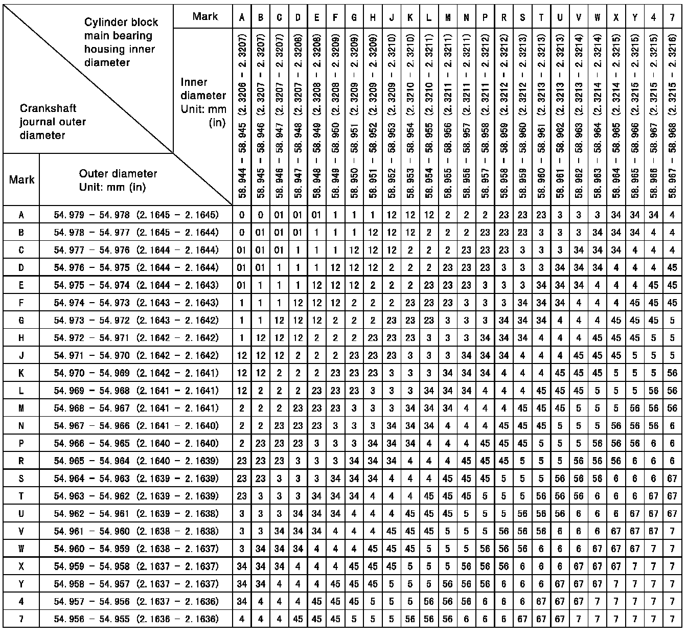 Main Bearing Selection Table (Nod, 3, and 5 journals):