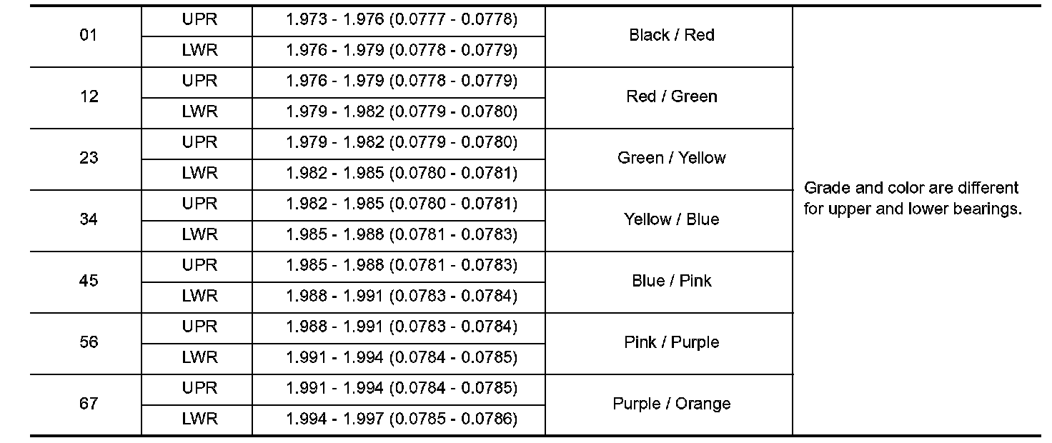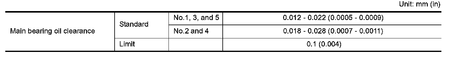 Bearing Oil Clearance - 2.5L (QR25DE):