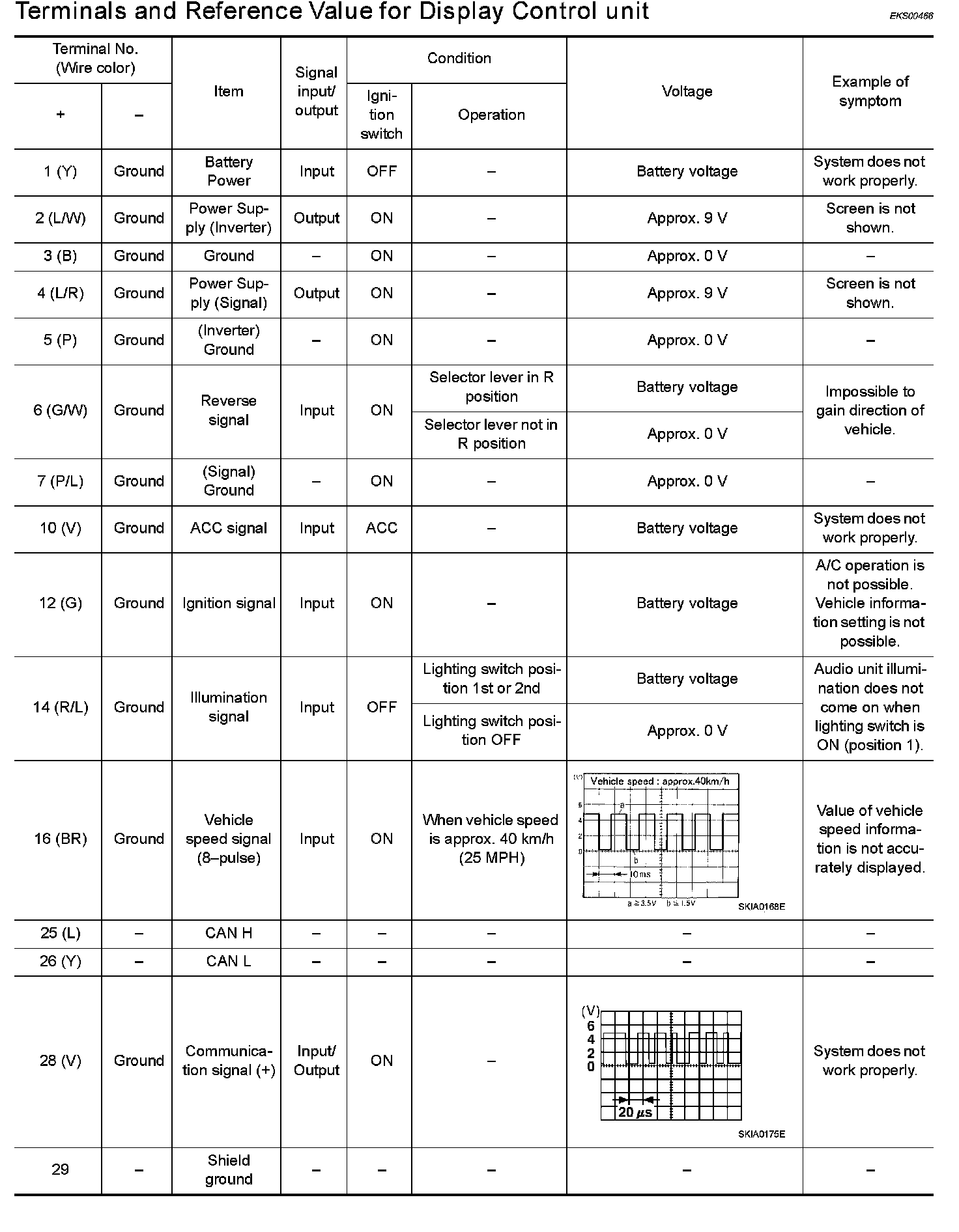 Terminals and Reference Value For Display Control Unit