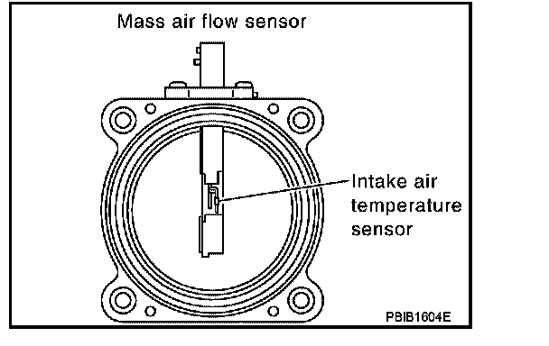 The mass air flow sensor is placed in the stream of intake air. It measures the intake flow rate by measuring a part of the entire intake flow. It consists of a hot film that is supplied with electric current from the ECM. The temperature of the hot film is controlled by the ECM a certain amount. The heat generated by the hot film is reduced as the intake air flows around it. The more air, the greater the heat loss. Therefore, the ECM must supply more electric current to maintain the temperature of the hot film as air flow increases. The ECM detects the air flow by means of this current change.