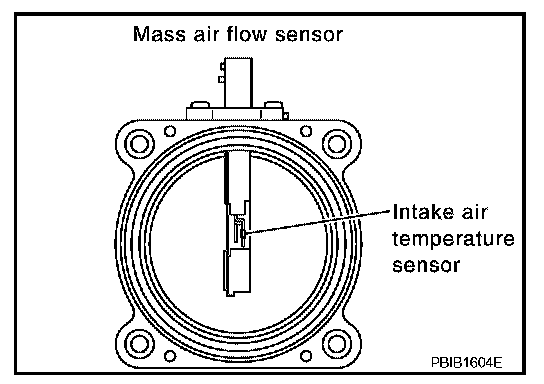 The mass air flow sensor is placed in the stream of intake air. It measures the intake flow rate by measuring a part of the entire intake flow. It consists of a hot film that is supplied with electric current from the ECM. The temperature of the hot film is controlled by the ECM a certain amount. The heat generated by the hot film is reduced as the intake air flows around it. The more air, the greater the heat loss. Therefore, the ECM must supply more electric current to maintain the temperature of the hot film as air flow increases. The ECM detects the air flow by means of this current change.