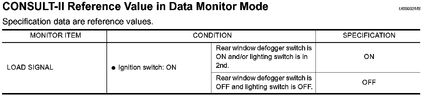 CONSULT-II Reference Value in Data Monitor Mode: