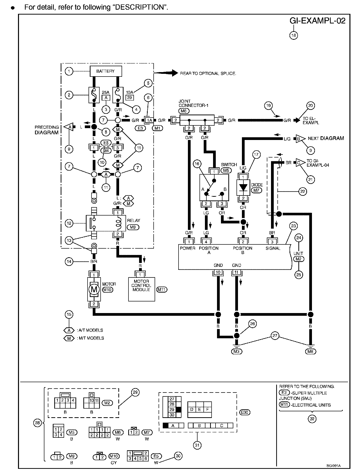 - Connector numbers in a single circle M33 indicate harness connectors.