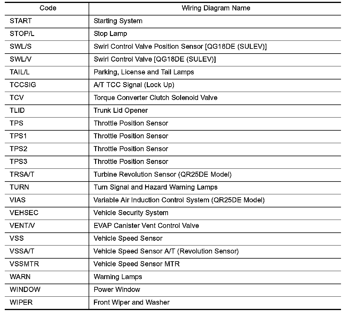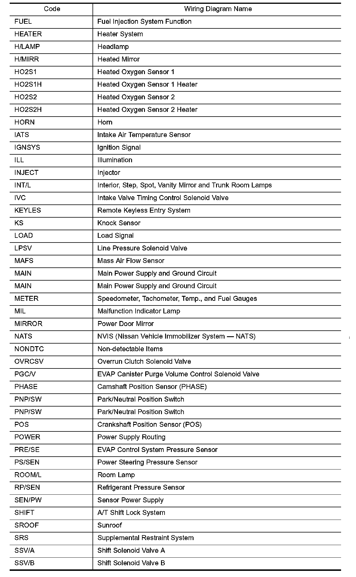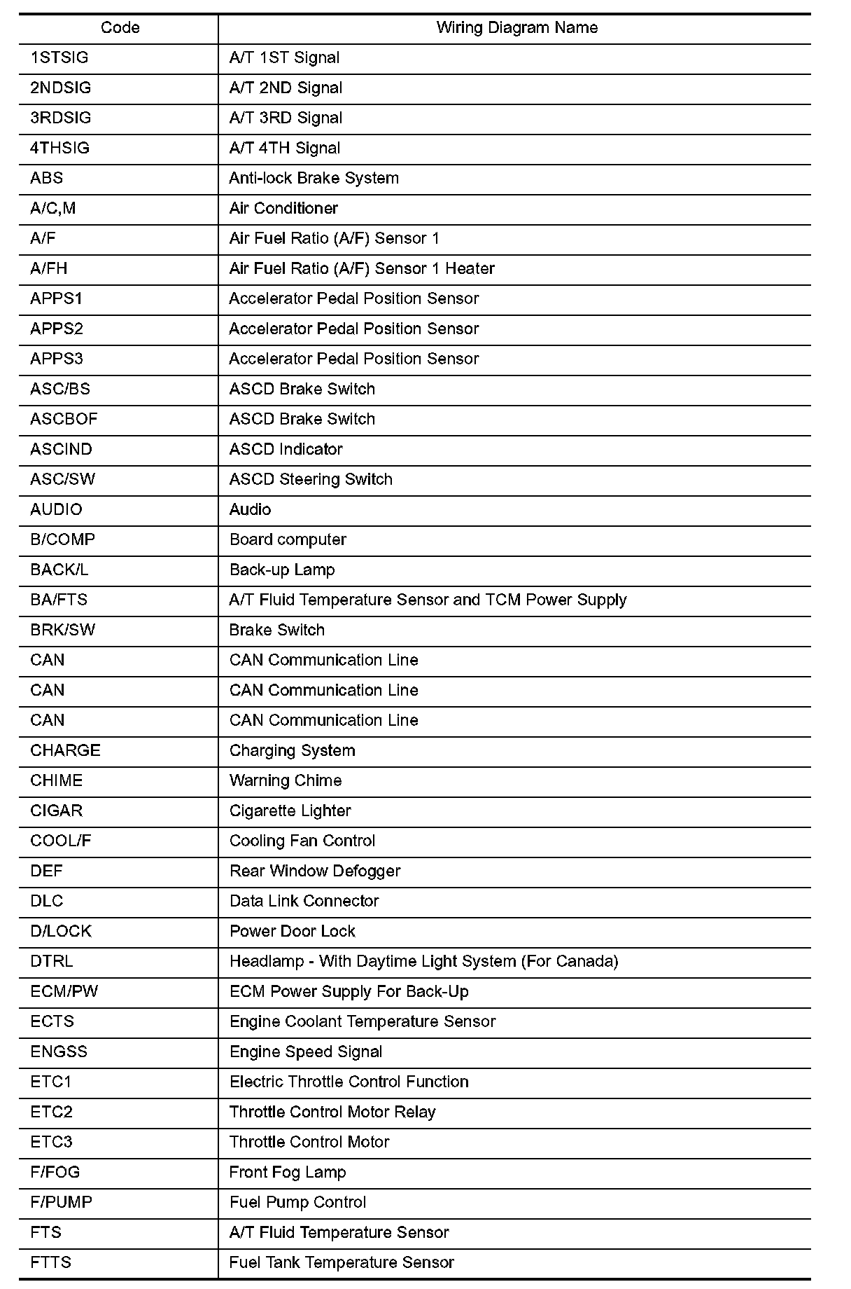 Wiring Diagram Codes/Abbreviations Part 1: