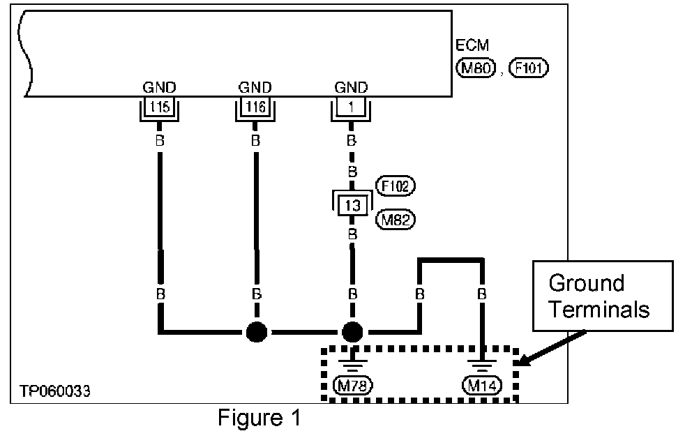 3. Make sure all ECM ground terminal connections are clean and tight as follows:
