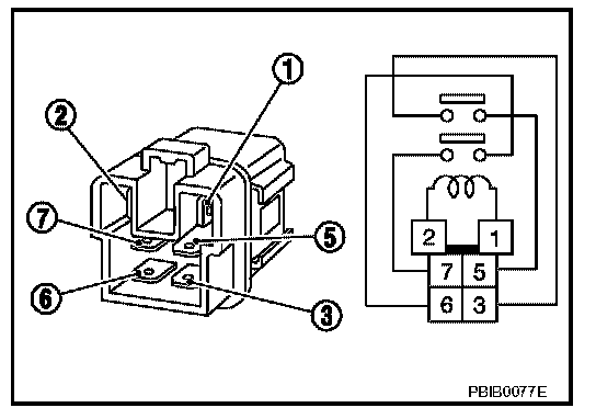 Check continuity between relay terminals 3 and 5, 6 and 7.