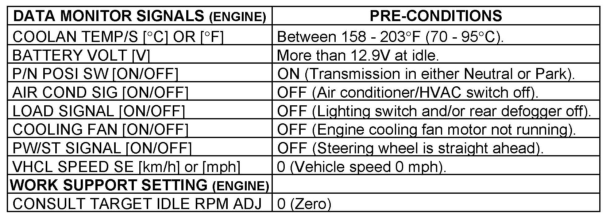 After warming up the engine and confirming all of the above preconditions, then