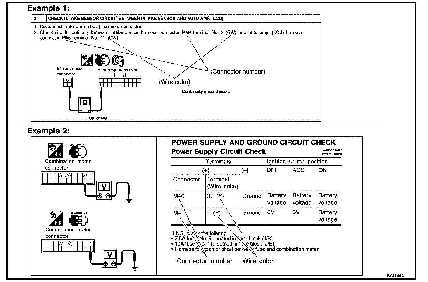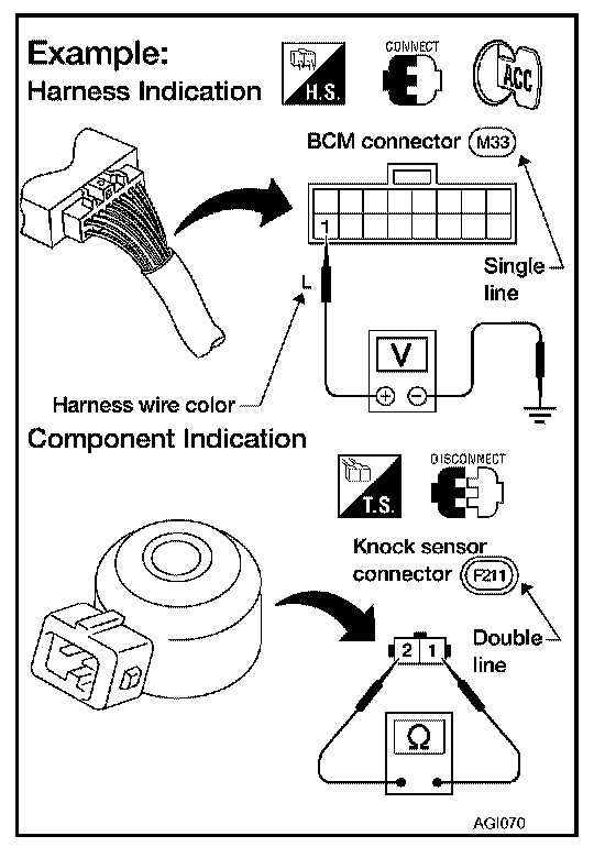 If you need to check circuit continuity between harness connectors in more detail, such as when a sub-harness is used, refer to Wiring Diagram in each individual section and Harness Layout in Power Supply, Ground & Circuit Elements for identification of harness connectors.