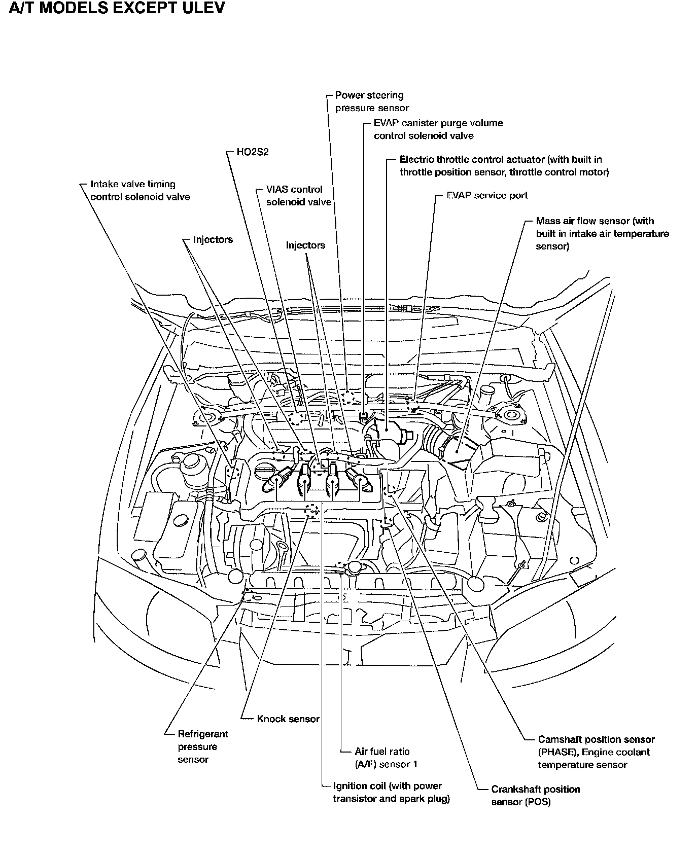 Engine Control Component Parts Location (A/T Models Except ULEV):
