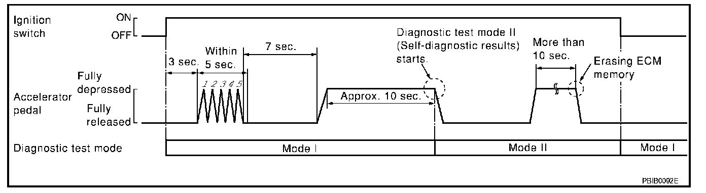 - Always ECM returns to Diagnostic Test Mode I after ignition switch is turned OFF.