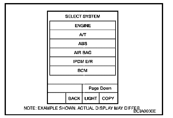 6. Perform each diagnostic item according to "DIAGNOSTIC ITEMS APPLICATION". Refer to BCS-5, "DIAGNOSTIC ITEMS APPLICATION". Scan Tool Testing and Procedures