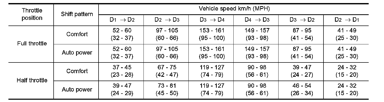 VEHICLE SPEED WHEN SHIFTING GEARS THROTTLE POSITION