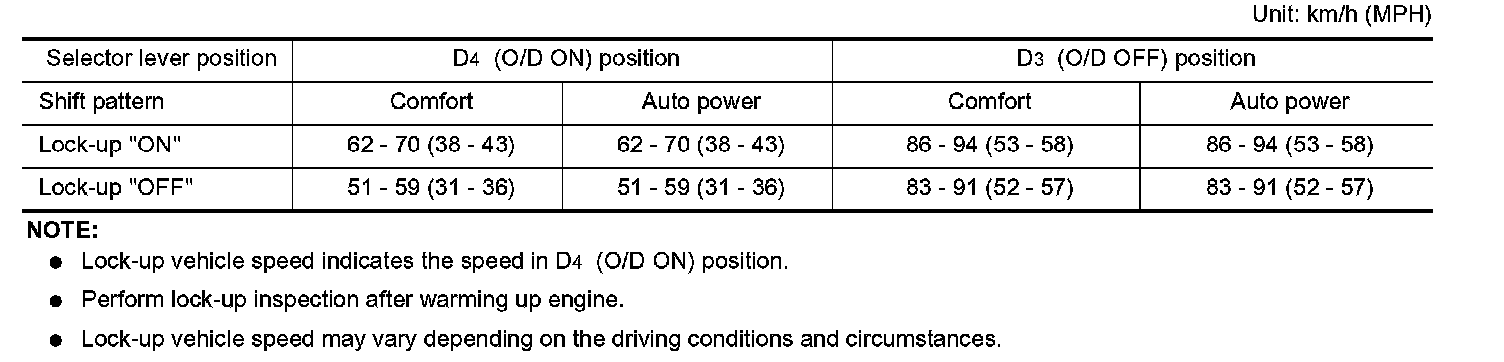 VEHICLE SPEED WHEN PERFORMING AND RELEASING LOCK-UP