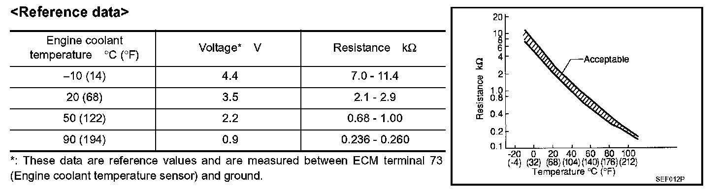 The engine coolant temperature sensor is used to detect the engine coolant temperature. The sensor modifies a voltage signal from the ECM. The modified signal returns to the ECM as the engine coolant temperature input. The sensor uses a thermistor which is sensitive to the change in temperature. The electrical resistance of the thermistor decreases as temperature increases.
