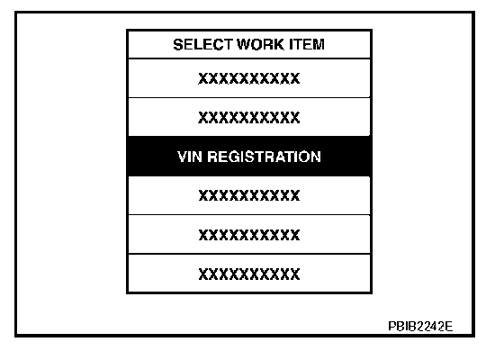 3. Select "VIN REGISTRATION" in "WORK SUPPORT" mode.