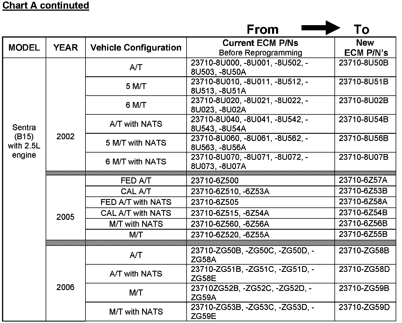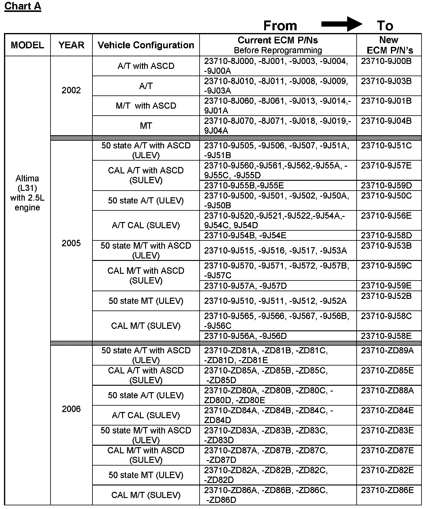 ^ Compare your vehicle's ECM P/N to those shown under Current ECM P/N in Chart A.