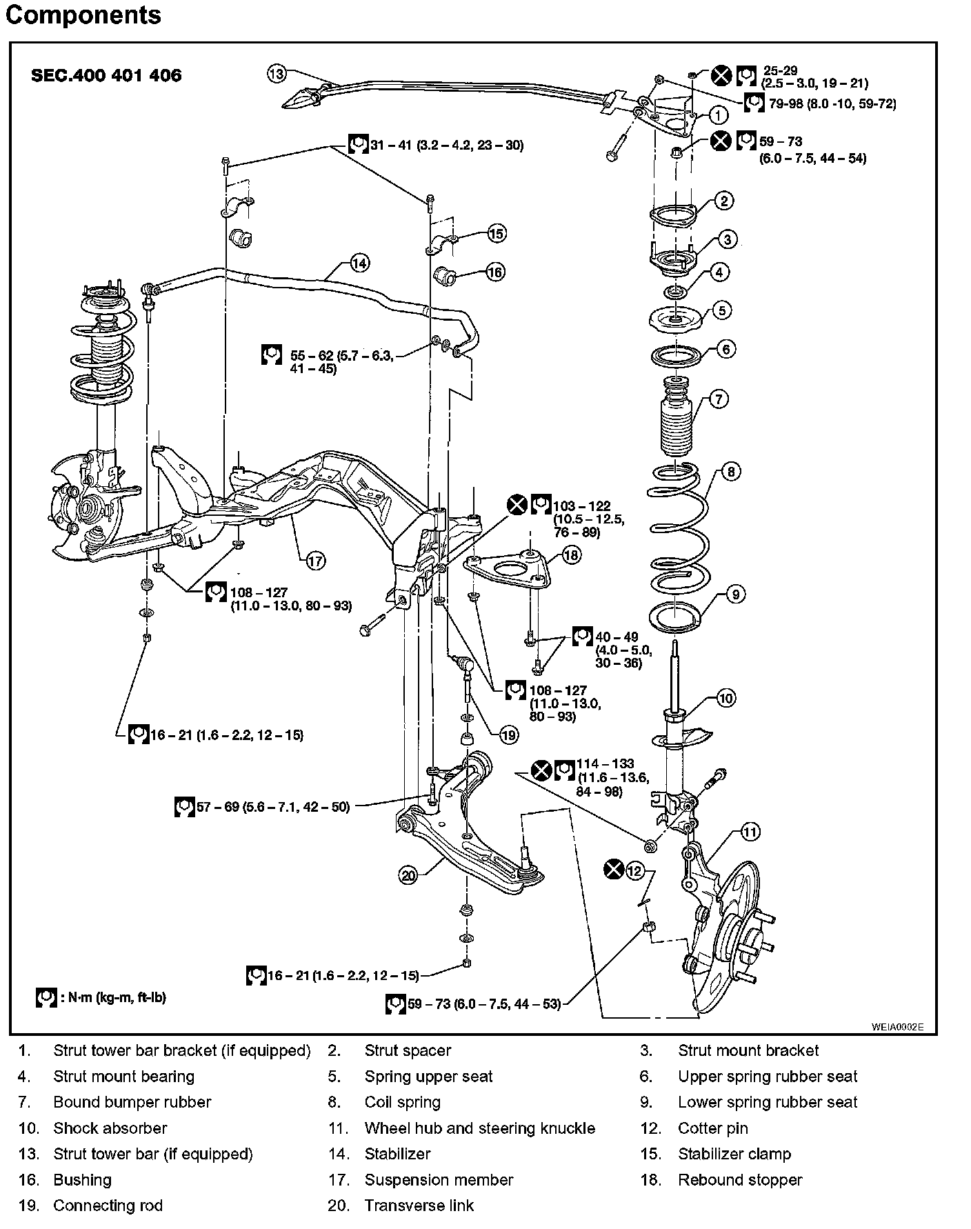 5. Install strut tower bar (if equipped). Refer to FSU-5, "Components".