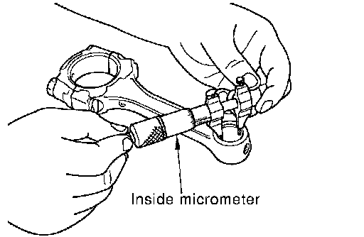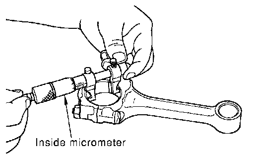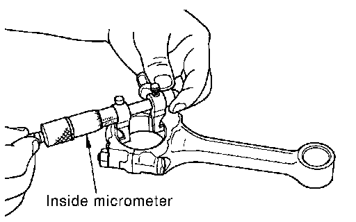 ^ Install the connecting rod bearings to the connecting rod and the cap, and tighten the connecting rod bolts to the specified torque. Using an inside micrometer measure the inner diameter of connecting rod bearing.