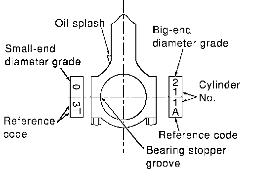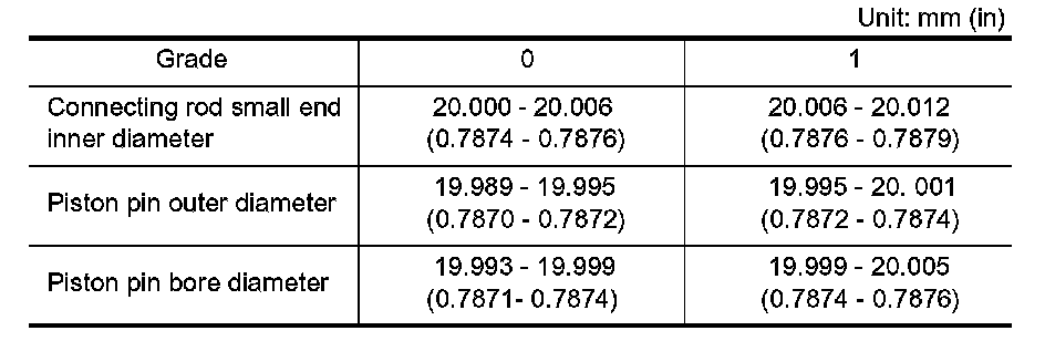 ^ The connecting rod small end grade and piston pin hole (piston pin) grade are provided only for the parts installed at the plant. For service parts, no grades can be selected. Only 0 grade is available.