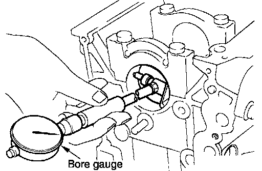 ^ Using a bore gauge, measure the inner diameter of the main bearing housing.