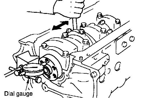 ^ If the measured value exceeds the limit, replace the thrust bearings, and measure again. If it still exceeds the limit, replace the crankshaft.