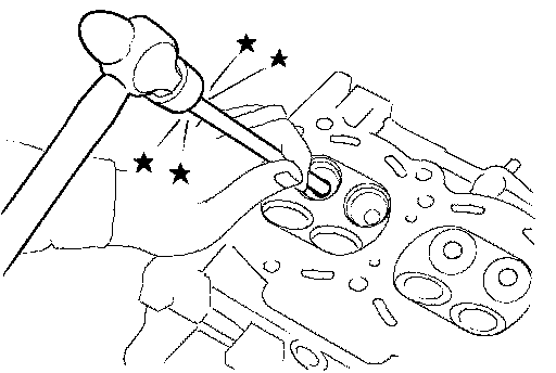 2. Drive out valve guide with a press [under a 20 kN (2.2 ton-force) pressure] or hammer and suitable tool.