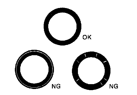 ^ If not, grind to adjust valve fitting and check again. If the contacting surface still has NG conditions even after the re-check, replace the valve seat.