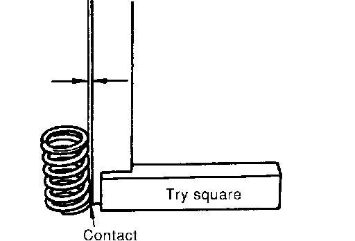 Set try square along the side of the valve spring and rotate the spring. Measure the maximum clearance between the top face of the spring and the try square.