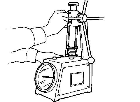 Check valve spring pressure with valve spring seat installed at specified spring height. Replace if not within specifications.