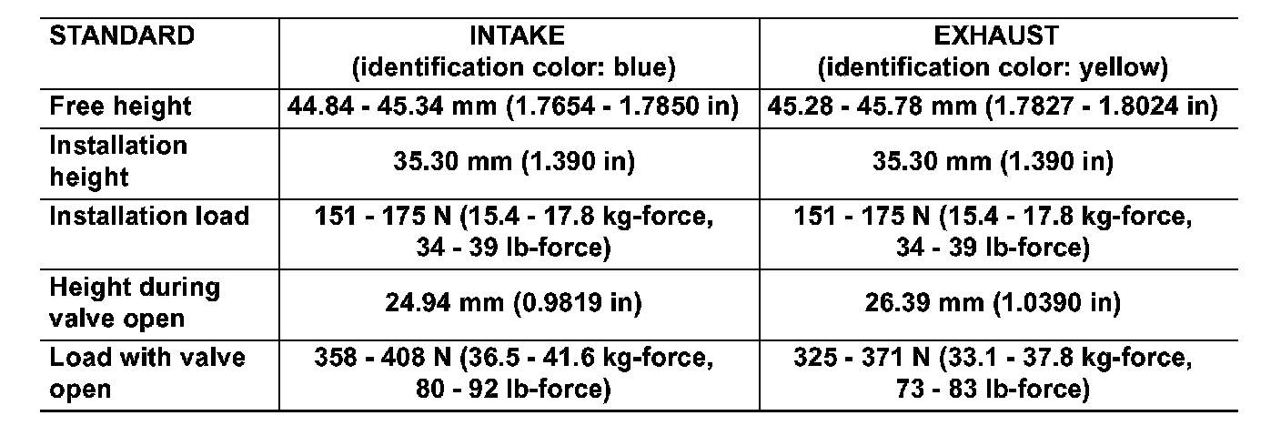 VALVE SPRING DIMENSIONS AND VALVE SPRING PRESSURE LOAD