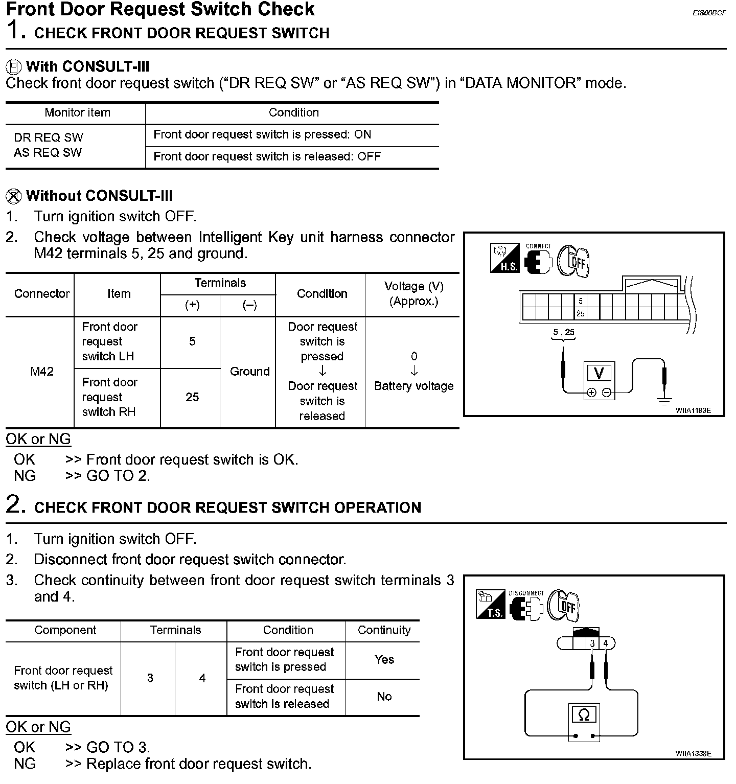 Front Door Request Switch Check (Steps 1 - 2):