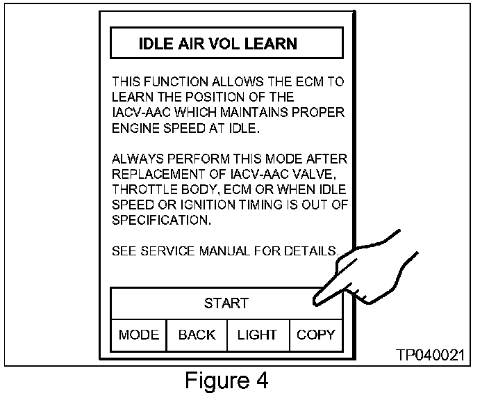 d. Press [START] on the "IDLE AIR VOL LEARN" screen. See Figure 4.