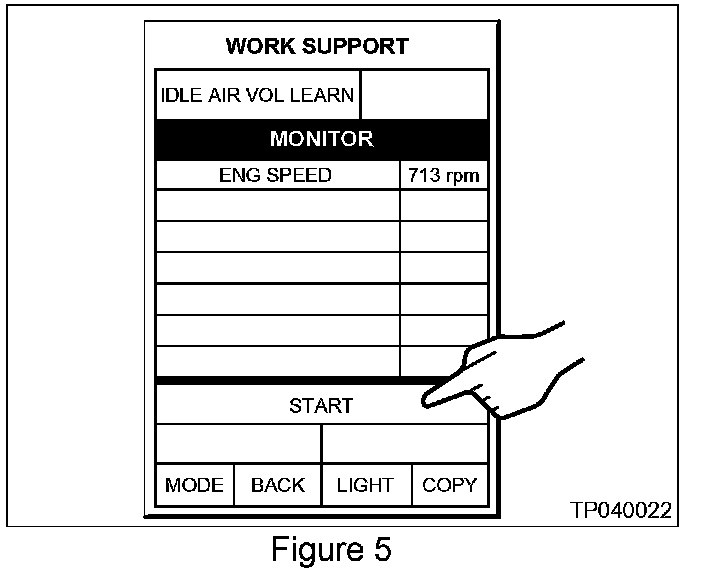 e. Press [START] on the "WORK SUPPORT" screen to begin the Idle Air Volume Learning (IAVL) procedure. See Figure 5.