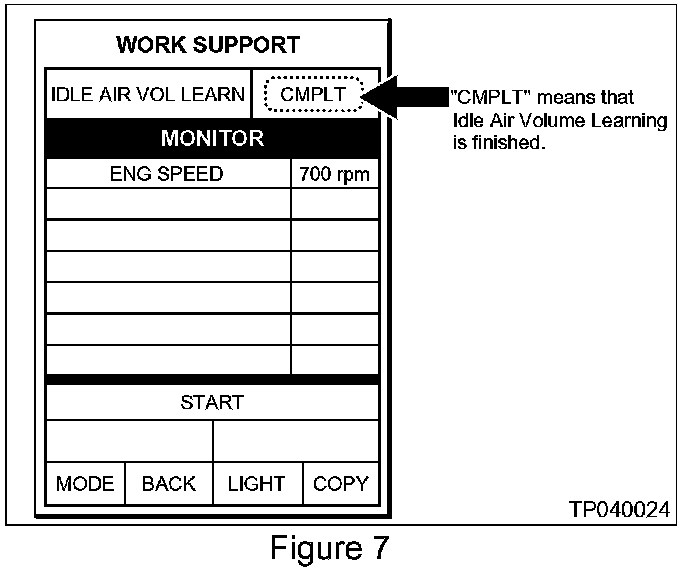 ^ CONSULT will display "CMPLT" in the top right corner of the screen when the IAVL procedure is finished. See Figure 7.