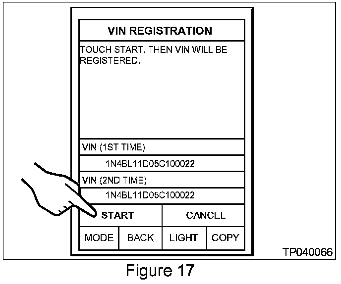 d. Press [START] on the "VIN Registration" screen. See Figure 11.