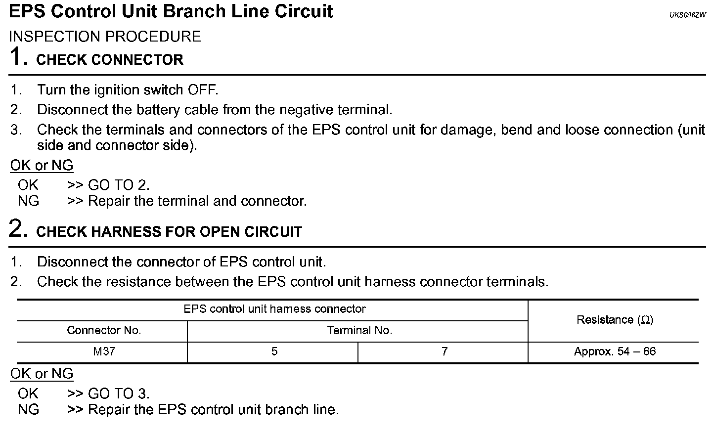EPS Control Unit Branch Line Circuit (Steps 1 - 2):