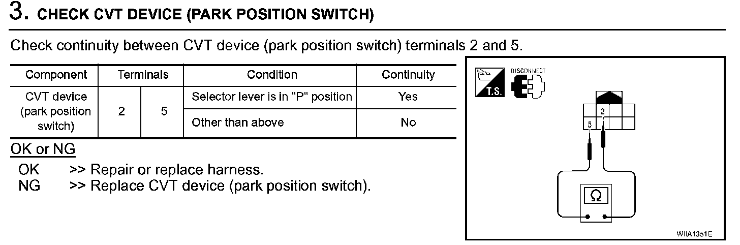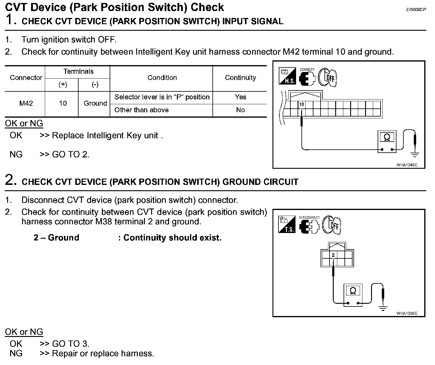 CVT Device (Park Position Switch) Check (Steps 1 - 2):