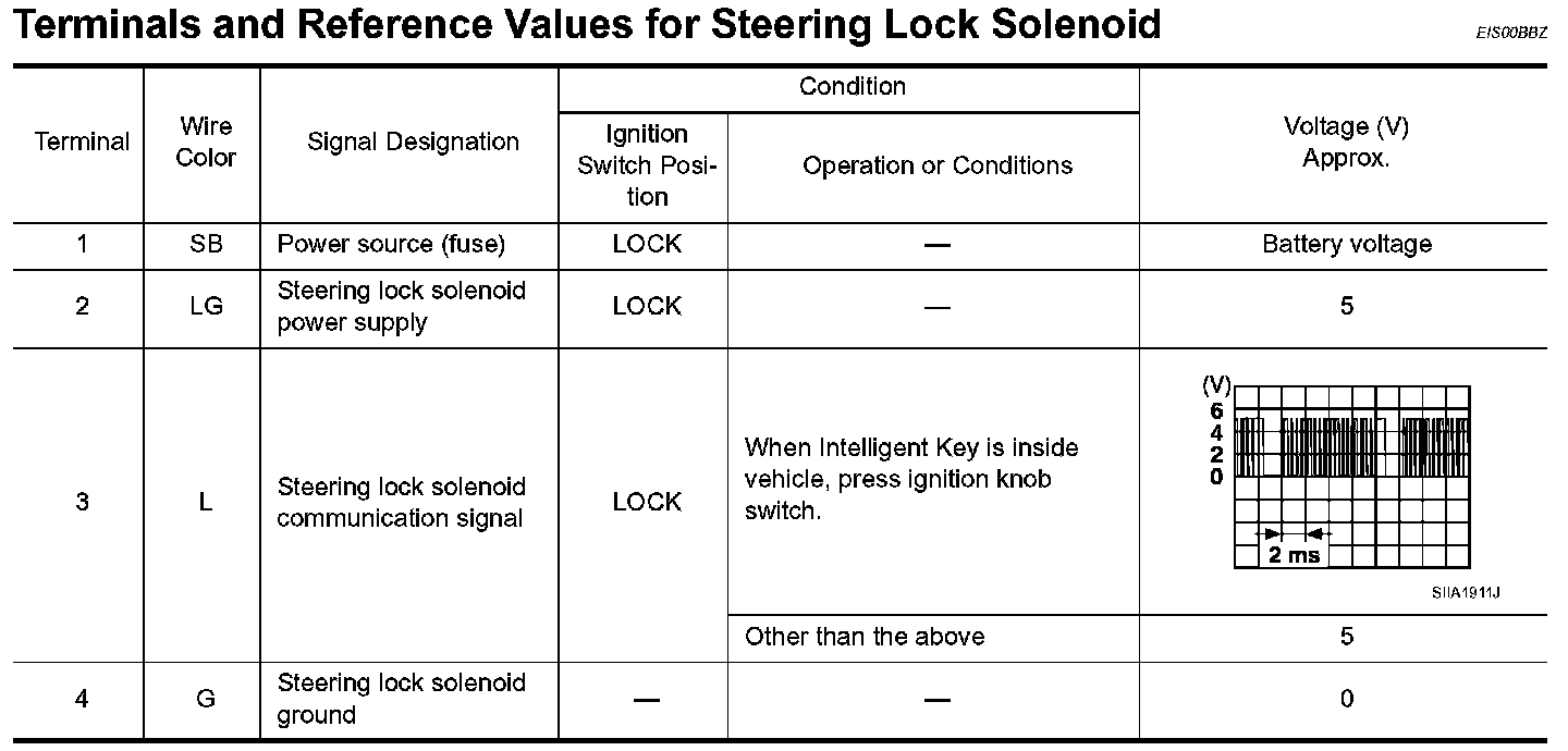 Terminals And Reference Values For Steering Lock Solenoid: